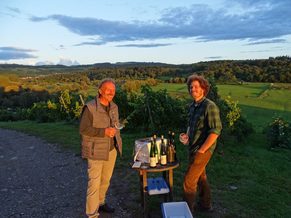 Erich Weber hatte das Weingut 1985 gegründet. Nach Recherchen in alten Karten hat er dann über die Jahre viele gute Parzellen erworben und das Weingut ist inzwischen auf 9 Hektar angewachsen. Seit einiger Zeit wird er von seinem Sohn Johannes unterstützt, der genauso Riesling verrückt ist wie der dynamische Winzer Weber.
